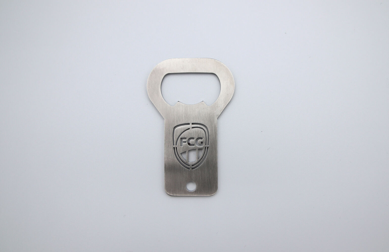 Edelstahl Flaschenöffner mit ausgestanztem FCG-Wappen